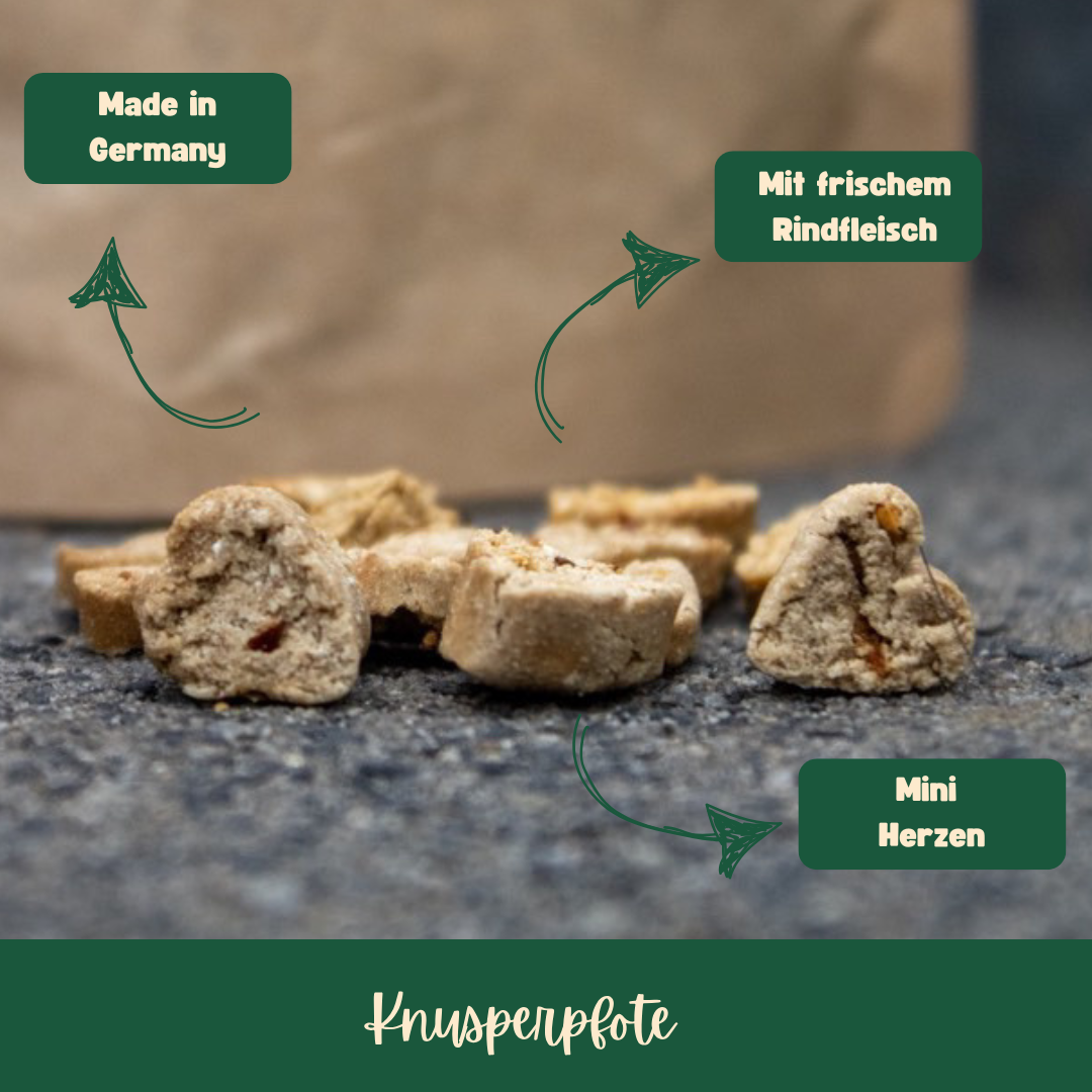 Kartoffelflocken, Kartoffelmehl, frisches Rindfleisch (15%), Kokosmehl (8%), getrockneter Apfel (5%), getrocknete Aprikosen (5%), Carob, Vanille.